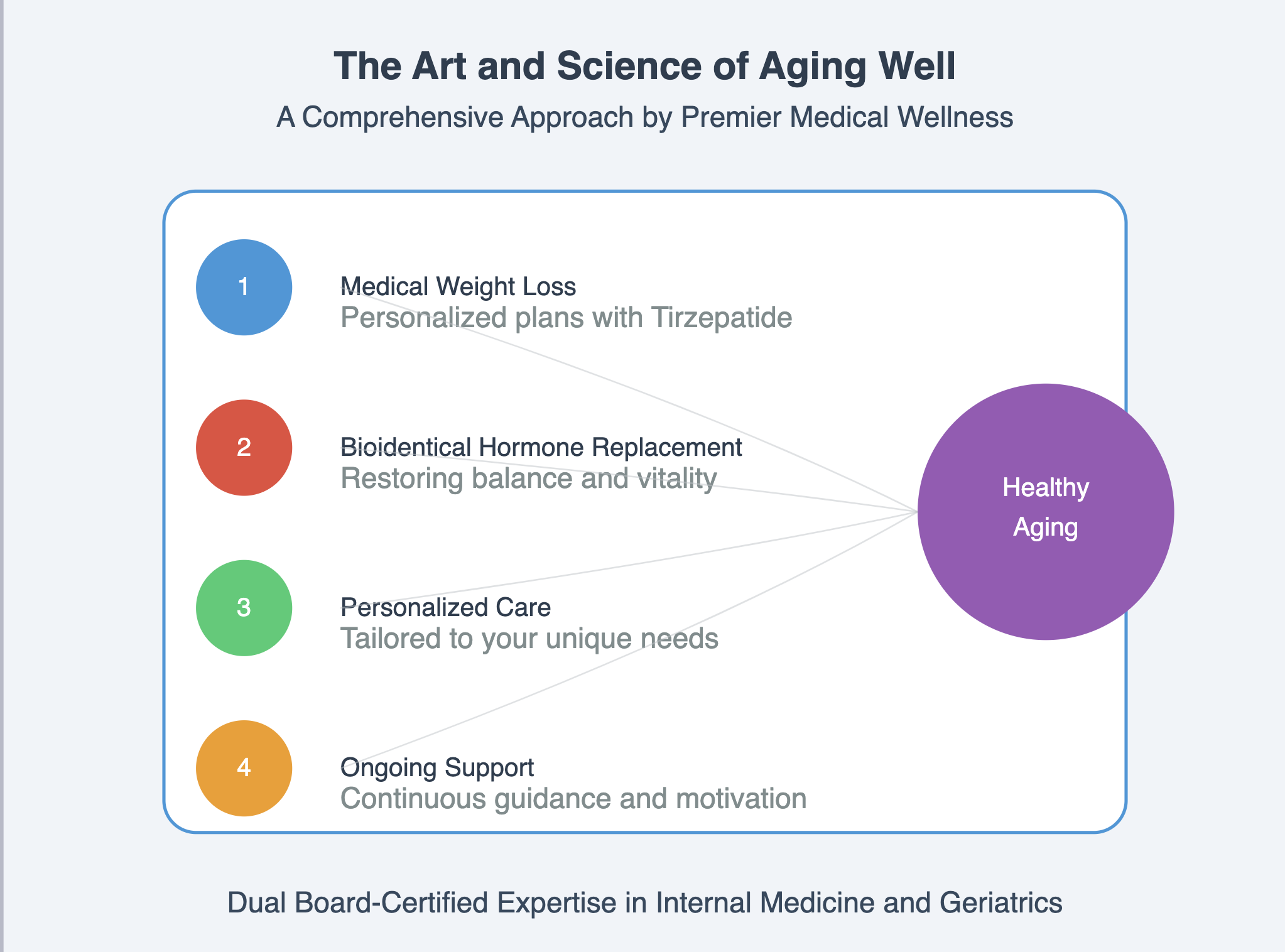 Are you ready to rewrite your aging story? To embrace a future filled with energy, confidence, and well-being? Contact us at Premier Medical Wellness today. Let's embark on this journey together, transforming the aging process from a time of decline into a period of unprecedented vitality and joy.